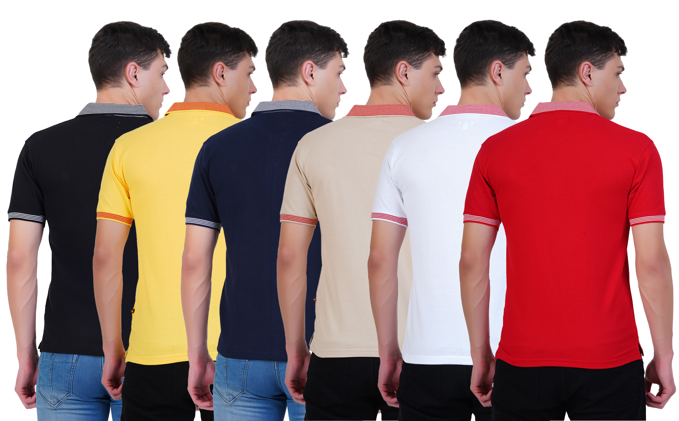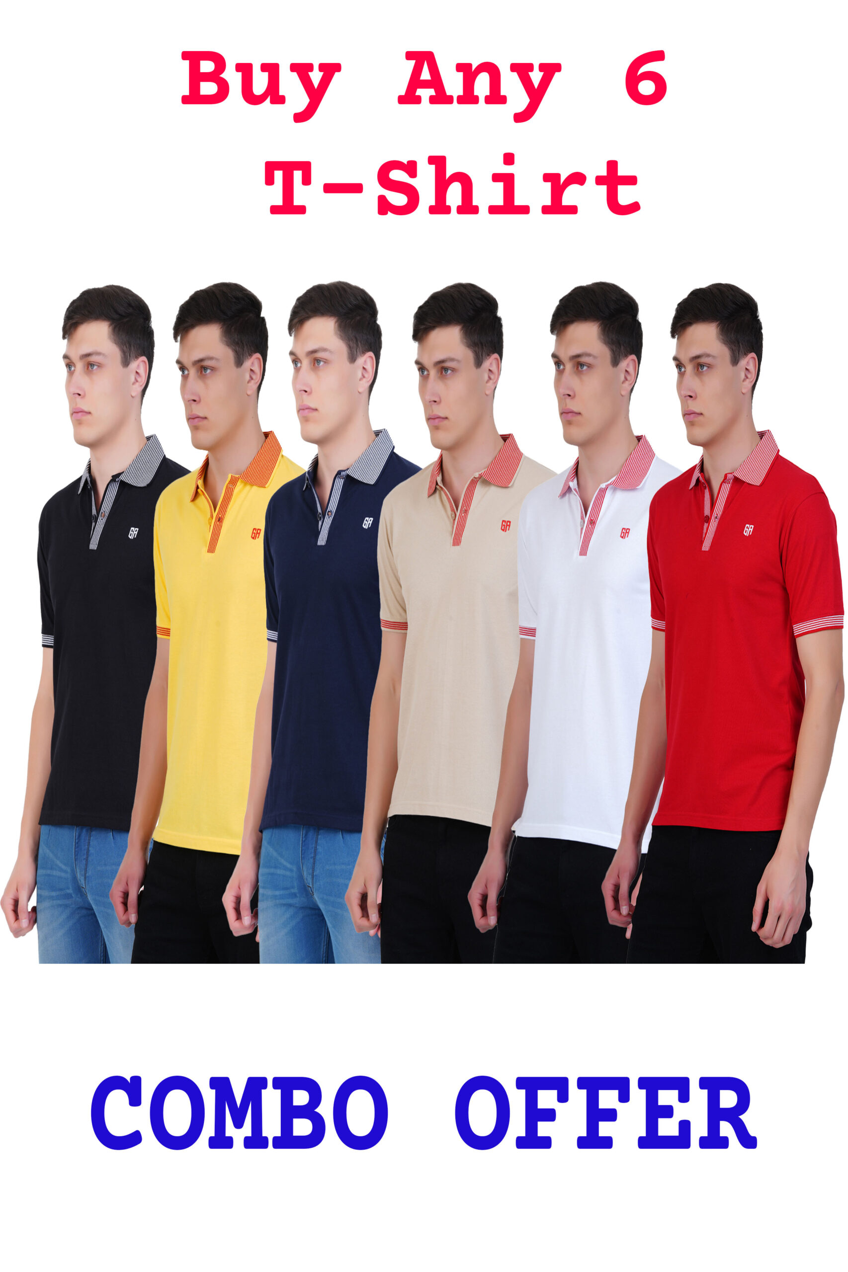 Premium Cotton Solid Jacquard Collar T-shirt Combo (6 Pcs Pack)