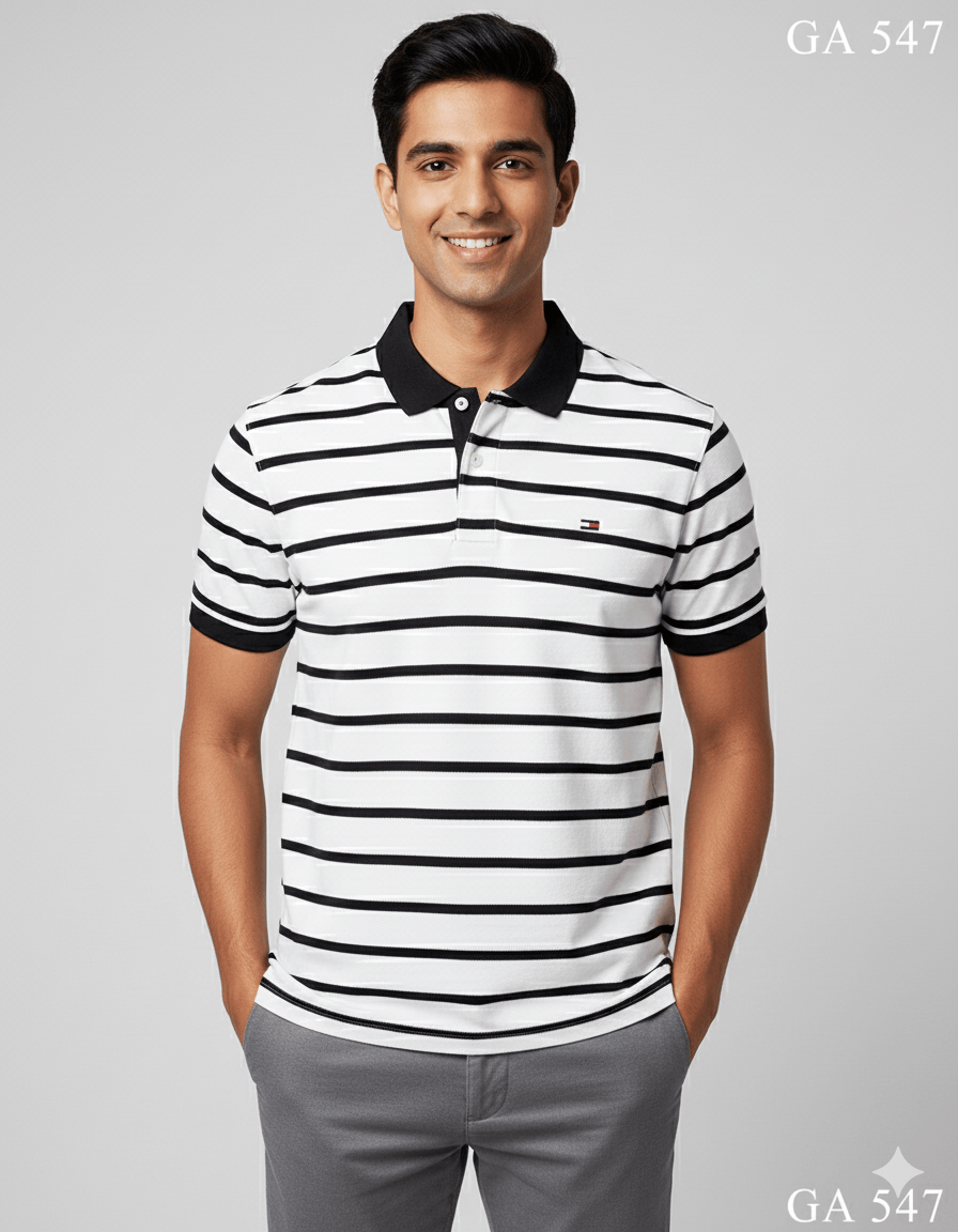 New Classic Premium Cotton Stripped Polo T shirt Half Sleeve