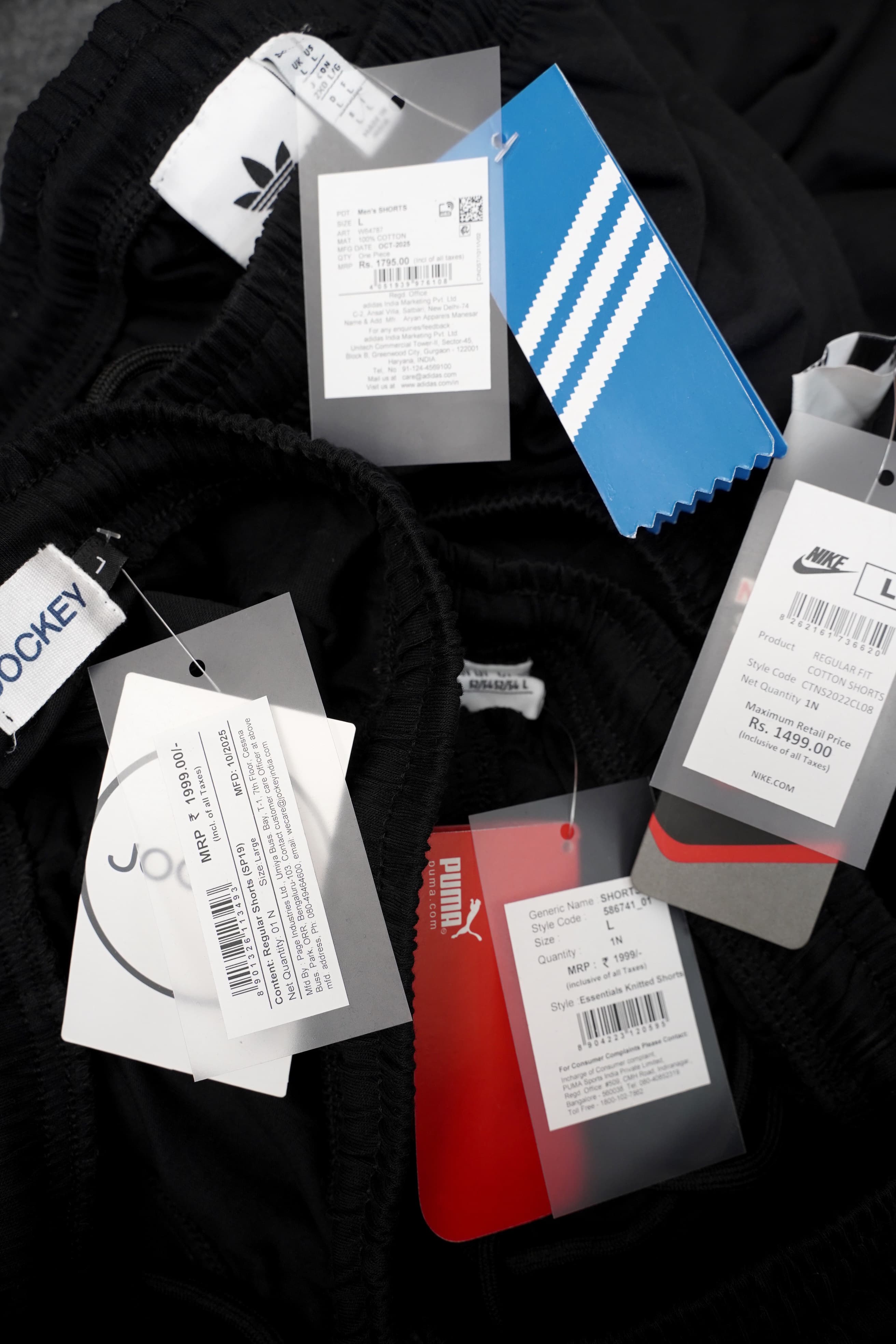 Multi Brand Only Black Color Embroidery Logo Cotton Loop Knit Shorts