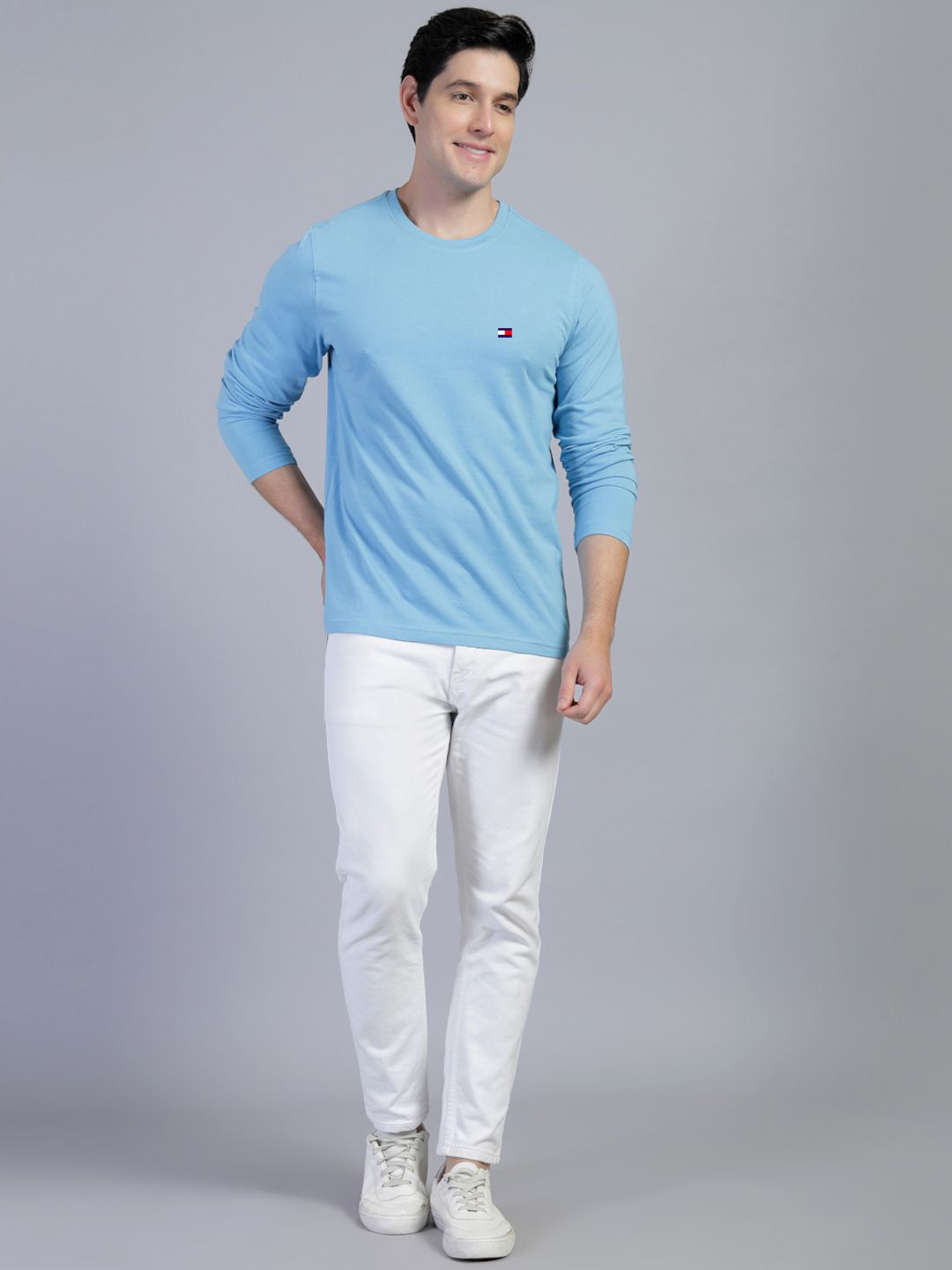 New Branded Solid Plain Cotton Round neck Full Sleeve T-Shirt