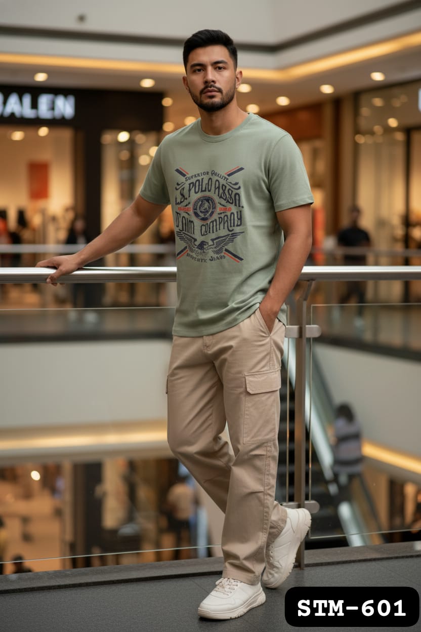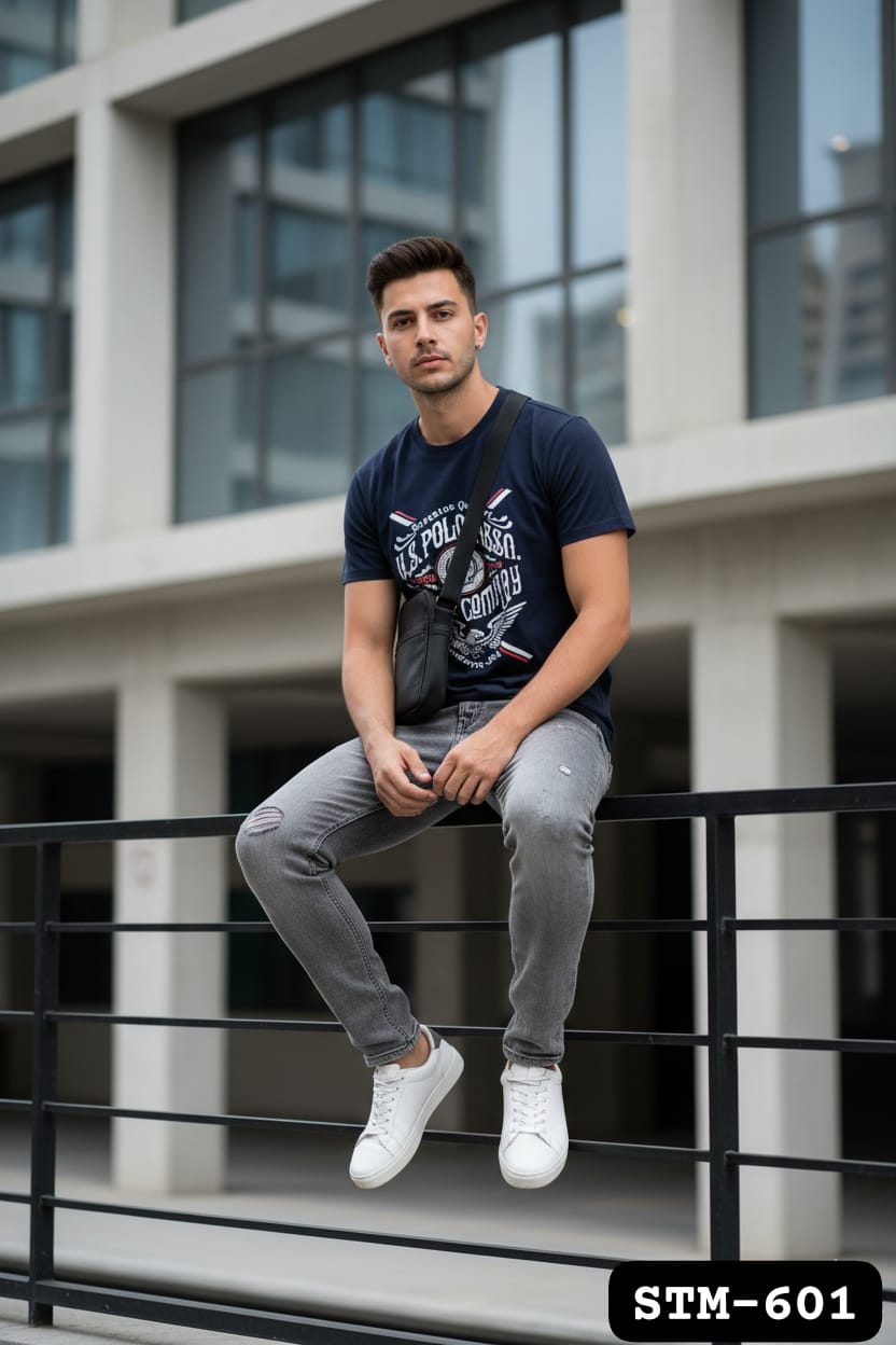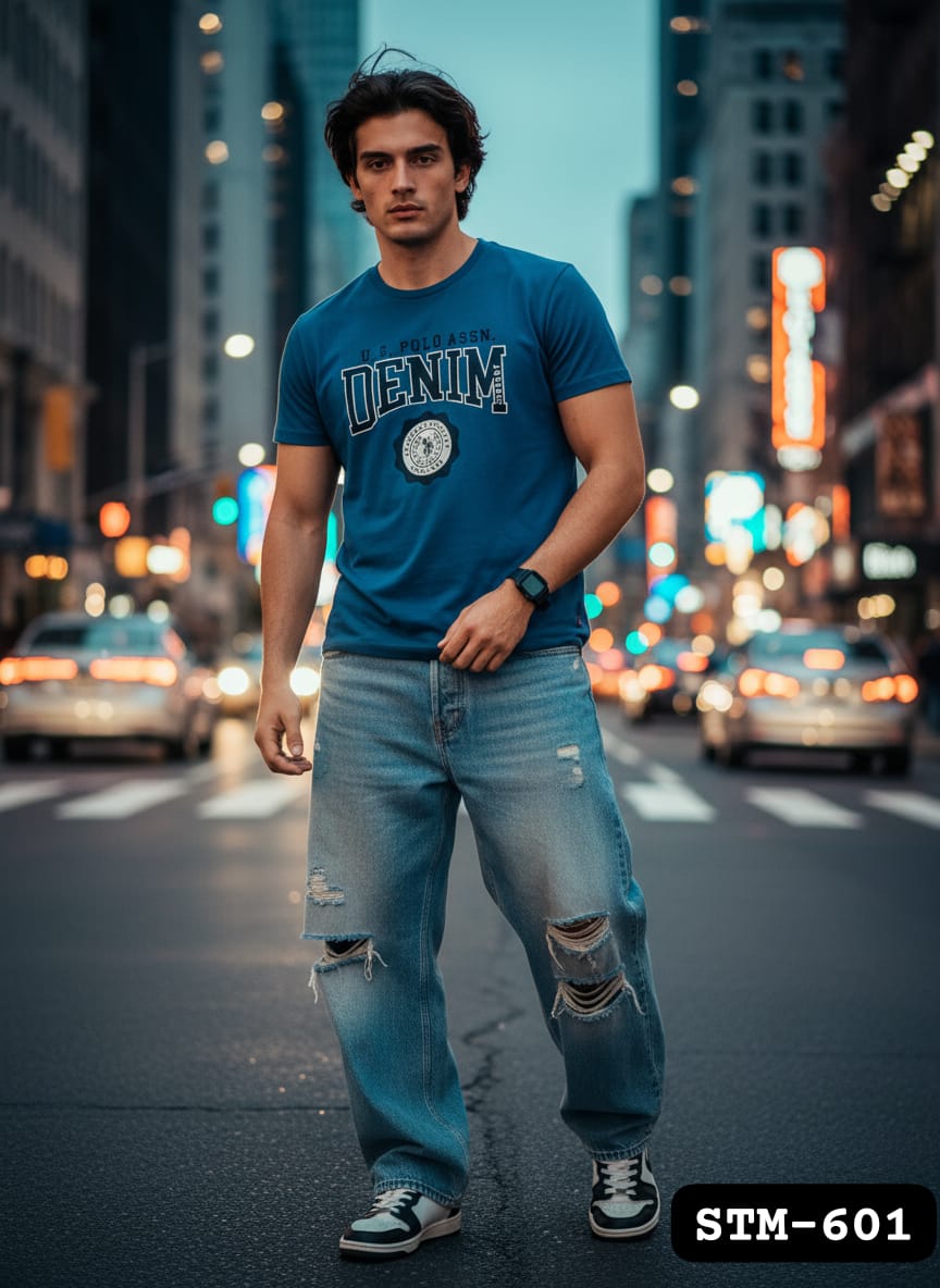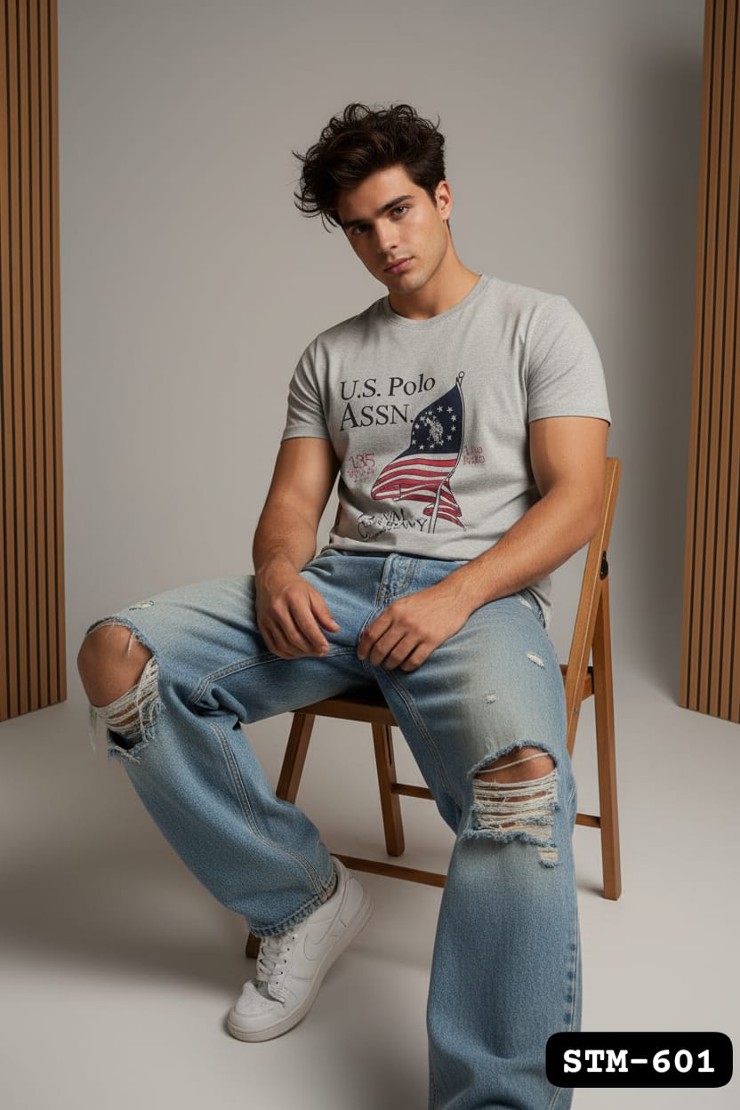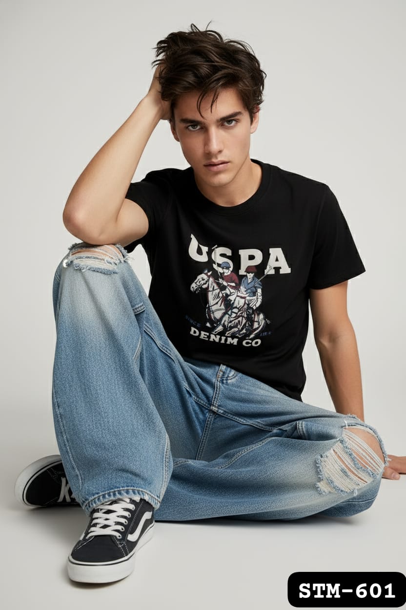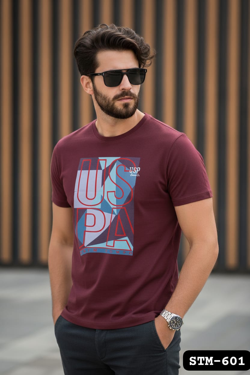 Brand New US Branded Men’s Chest Printed Round Neck T-Shirt