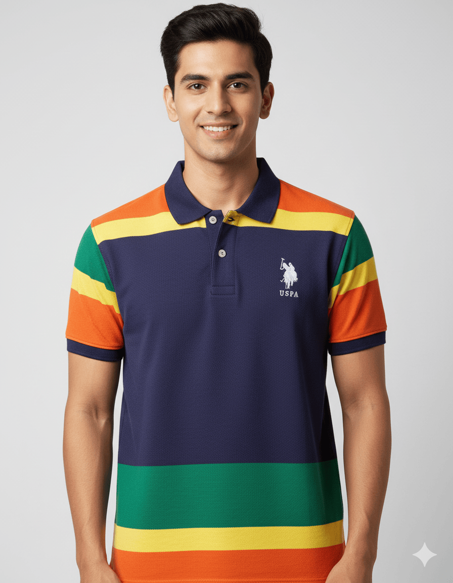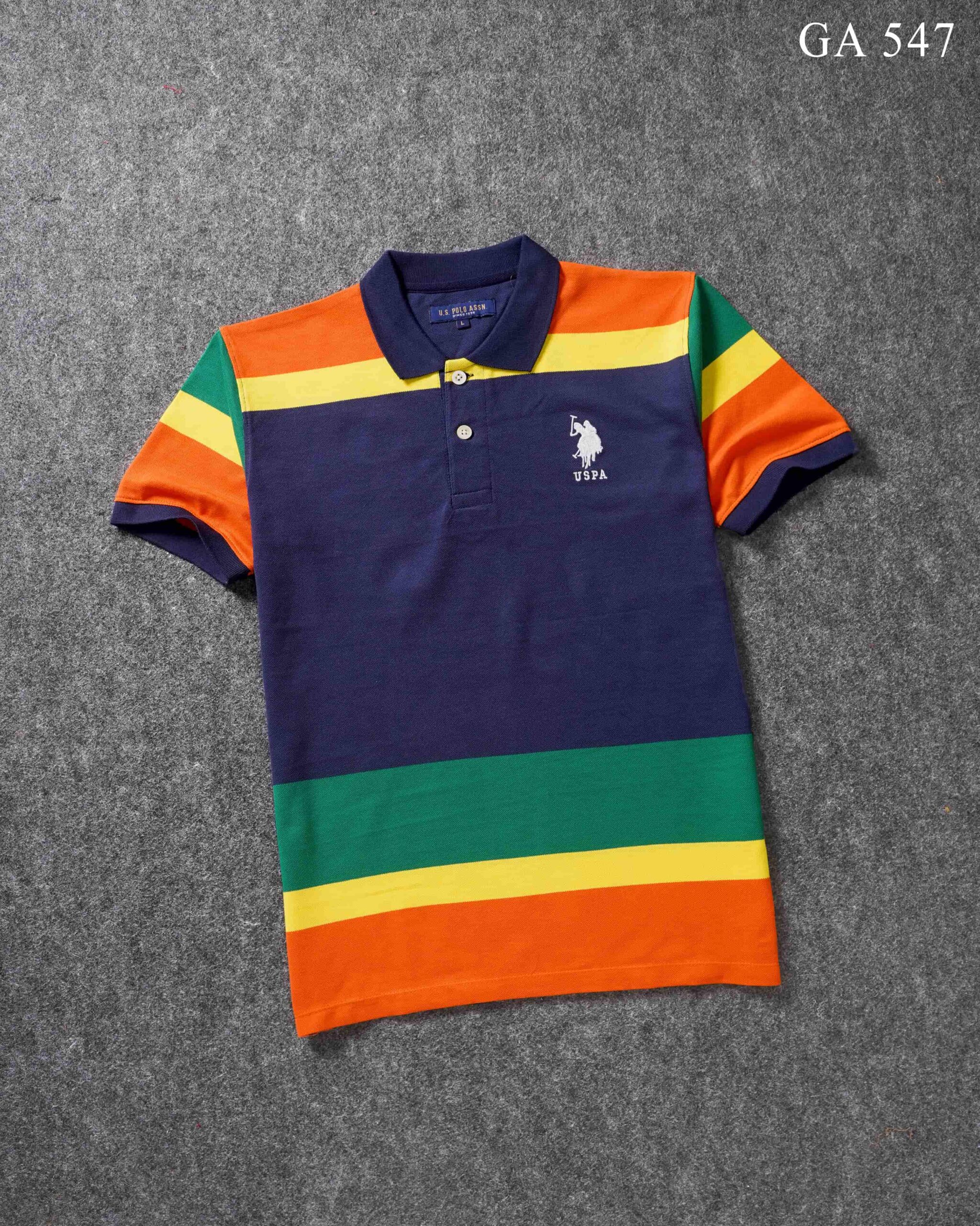 Brand New US Premium Cotton Stripped Polo T-shirt Half Sleeve